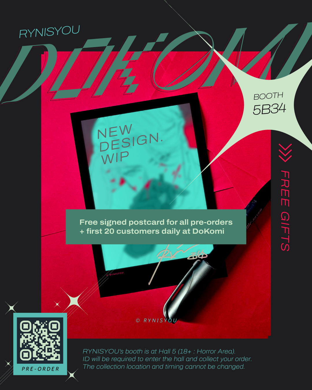 Free signed postcard for all event pre-orders and first 20 customers at DoKomi daily.